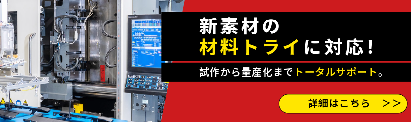 当社では、金型製作、量産成形で培ったノウハウを活かし、当社保有の既存金型を用いた材料トライアルを承っています。